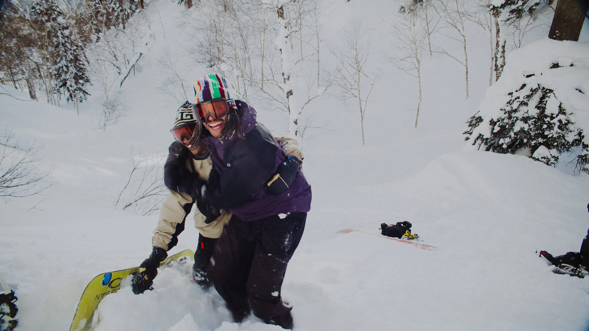 That kind of brings us full circle. Funnily enough, it was also through the Nitro movie, because Lou, who basically started the whole TDI thing, was sitting at some movie premiere in America and watched the Vámonos movie. I think he had only been snowboarding for a year and only knew Zeb Powell as a black snowboarder. Then he saw shots of me, immediately wrote to my team manager, and asked how he could get in touch with me. Then he just sent me a DM on Instagram saying we should go shred. He came to visit me, and we drove to Laax and got to know each other there. That was at the Laax Open back then. He was there for the US team anyway, because he was filming the pipe team, and we went there a week before and hung out, filmed a bit, chatted a bit, and he told me about his ideas for TDI, and since then the relationship has become more intense every year, which is really cool, because I got to know the other people too. It's a longer process, of course, because they're in America and you don't see each other that often. But now they're all friends, like family, and it's turned out really cool.